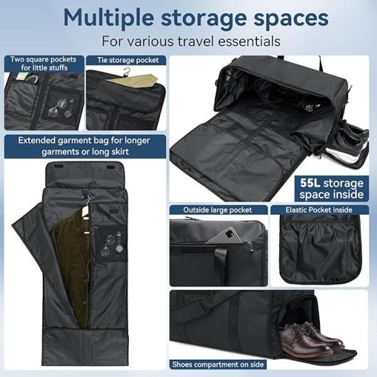 GARPROVM Garment Duffle Bags for Travel, 4 in 1 Convertible Garment Bags with Shoe Compartment Removable Suit Bag, Waterproof Carry On Luggage Bag Backpack for Short Trip, Weekender Bag for Men Women,