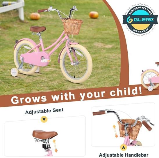 Glerc Girls Bike with Basket for 3-10 Years Old Kids