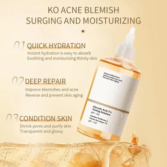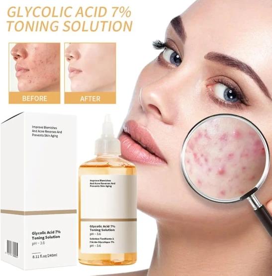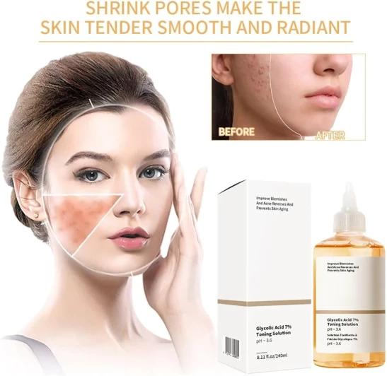 Glycolic Acid 7% Toner, Glycolic Acid 7% Toning Solution for Blemishes and Acne, Facial Exfoliation Astringe Pores, Rejuvenating Moisturizing Skin, 240ML/8.12 fl.oz