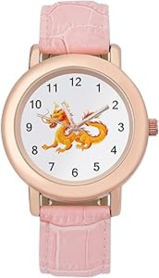 Golden Dragon Fashion Watch For Women Easy Reader Novelty Round Watches Slim Quartz Casual Dress Wrist Watch Pink