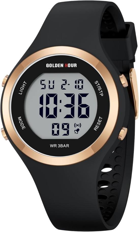 GOLDEN HOUR Digital Ladies Watches 5ATM Waterproof Sport Womens Watch with Luminous/Date/Week/Month Chronograph, Silicone Strap Swimming Watch for Women
