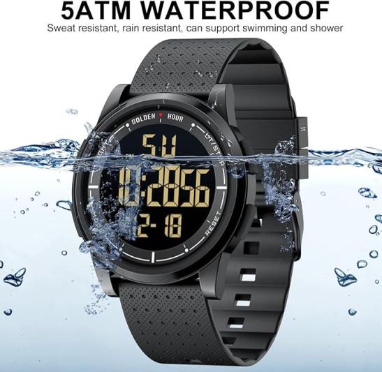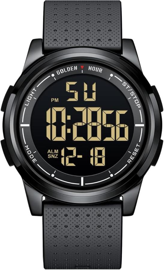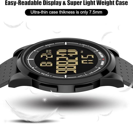 GOLDEN HOUR Ultra-Thin Minimalist Sports Waterproof Digital Watches Men with Wide-Angle Display Rubber Strap Wrist Watch for Men Women