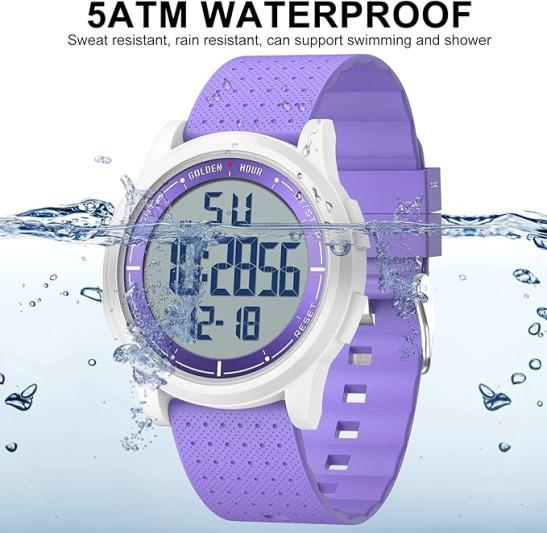GOLDEN HOUR Ultra-Thin Minimalist Sports Waterproof Digital Watches Men with Wide-Angle Display Rubber Strap Wrist Watch for Men Women
