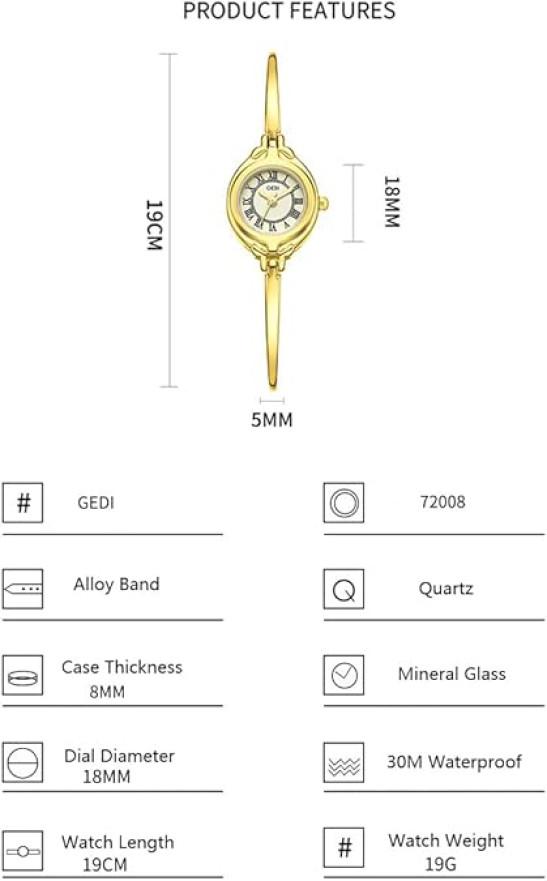 Gosasa Classic Vintage Bangle-Style Women's Watch with Small Dial and Thin Strap Elegant Dress Analog Ladies Wristwatch Fashion Waterproof Quartz Women Gold Watch