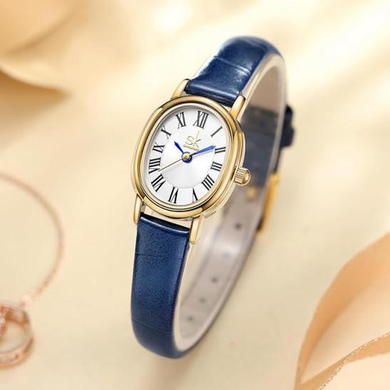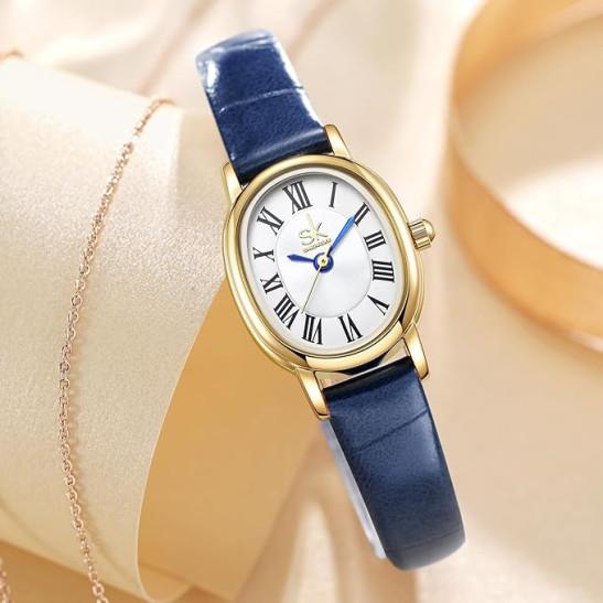 Gosasa Retro Oval Women's Watch Roman Numeral Dial Fashion Ladies Quartz Watch Leather Strap Elegant Wristwatch for Women Waterproof