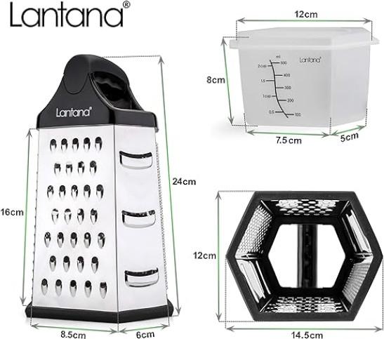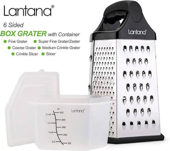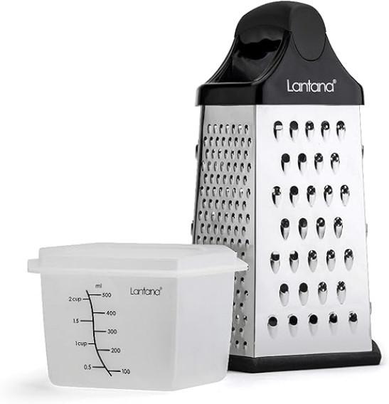 Grater with Container – Hand held Grater/Slicer/Zester, Includes Fitted Measuring Container & Lid