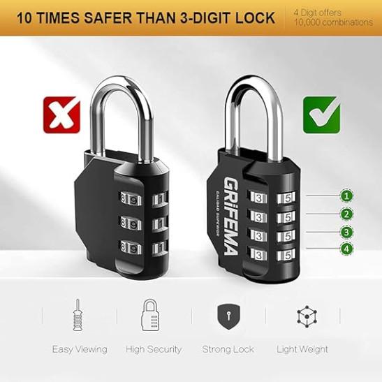 GRIFEMA Combination Padlocks with 4 Digit Code