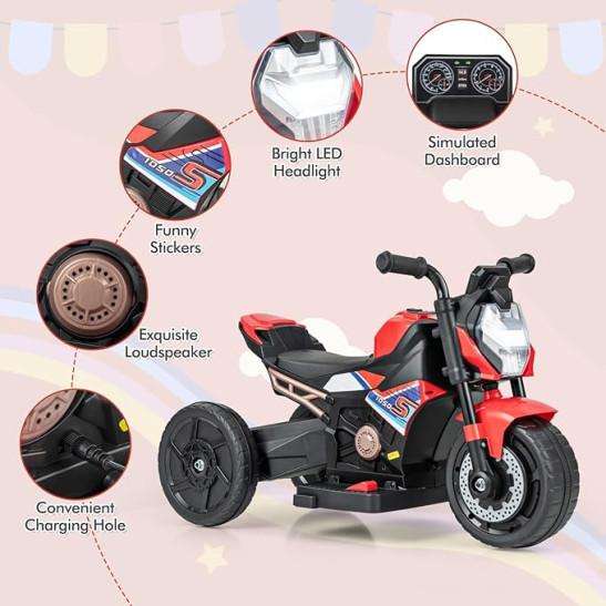 GYMAX Kids Electric Motorbike, 6V Toddler Ride on Motorcycle with 2/3-Wheel Modes, Detachable Training Wheels, Headlight, Music & Horn, 3 Wheels Children Motor Bike for Boys Girls