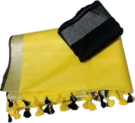 HAIDER ALI AND SONS Linen SlubYellow Colour Ethnic Wear Saree For Women's (With Blouse), yellow, One size, yellow, One Size