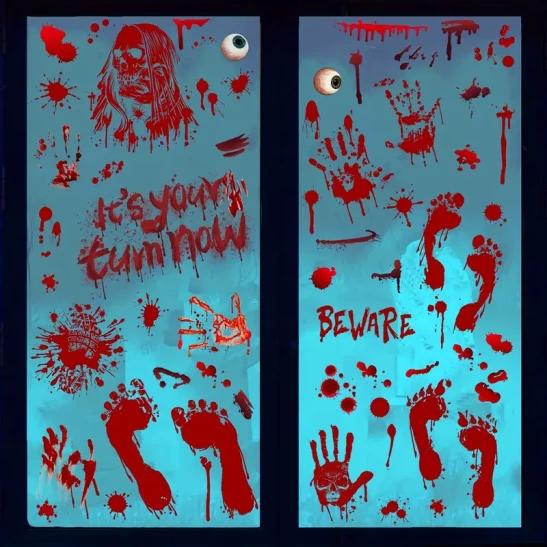 Halloween Decorations, 84pcs Halloween Window Clings, 8 Sheets Bloody Handprint