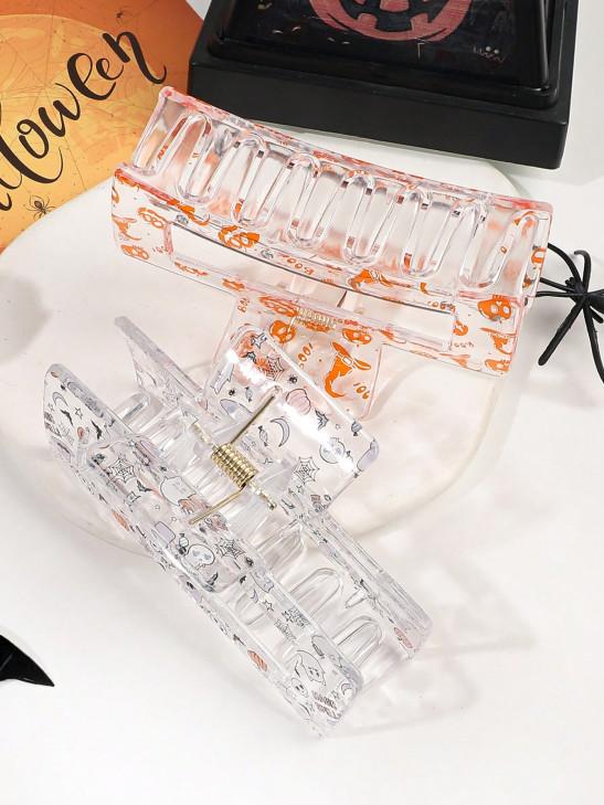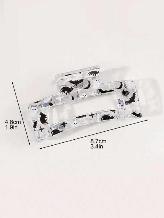 Halloween Pumpkin Ghost Bat Star Moon Printed Translucent Shiny Hollow Medium Hair Claw