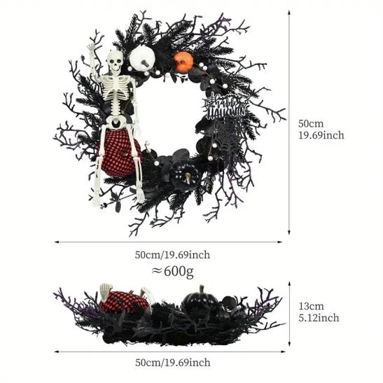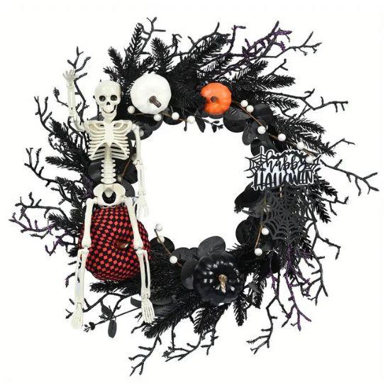 Halloween Wreath Decoration Skeleton Garland - Wall Hanging Plastic Decor