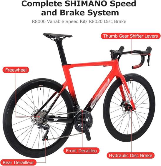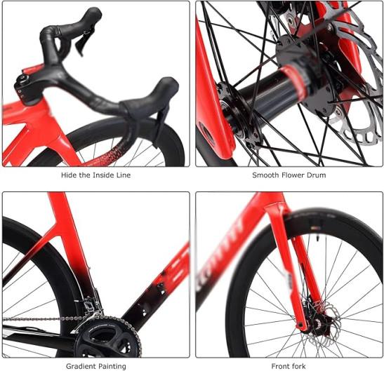 HJUGHPN Bikes Carbon Road Bike Fully Integrated Inner Cable Hydraulic Disc Brake Racing Road Bicycle