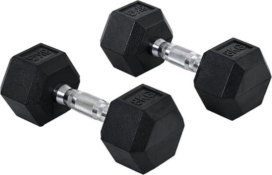 HOMCOM 2x4kg/2x5kg/2x6kg/2x8kg/2x10kg Rubber Dumbbell Sports Hex Weights Sets Home Gym Fitness Hexagonal Dumbbells Kit Weight Lifting Exercise