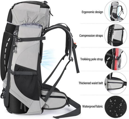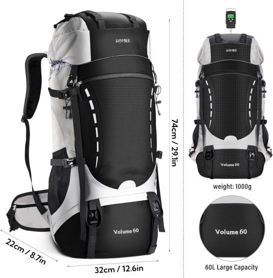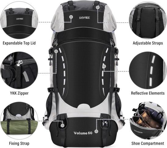 HOMIEE 45L 60L Hiking Rucksack for Men Women, Waterproof Walking Backpack Lightweight Skiing Camping Trekking Travel backpack for Fishing, Cycling, Climbing