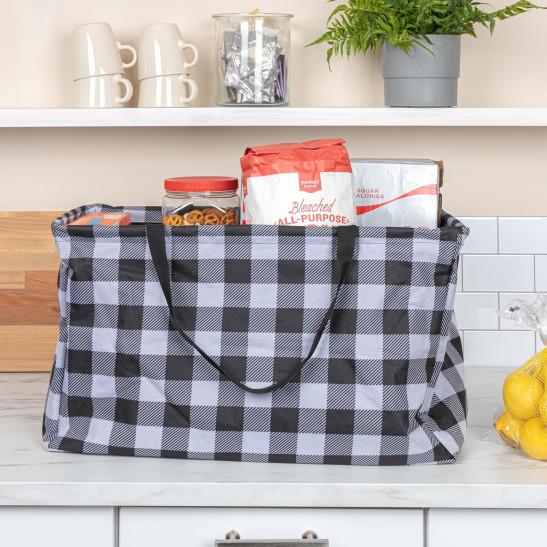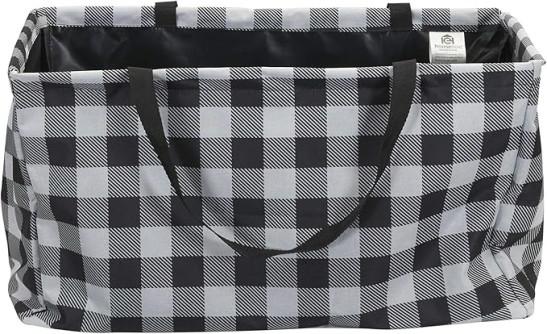 Household Essentials Krush Canvas Utility Tote | Reusable Grocery Bag | Black and White Plaid