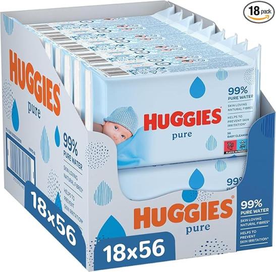 Huggies Pure, Baby Wipes, 18 Packs (1008 Wipes Total) - 99 Percent Pure Water Wipes - Fragrance Free for Gentle Cleaning and Protection - Natural Wet Wipes