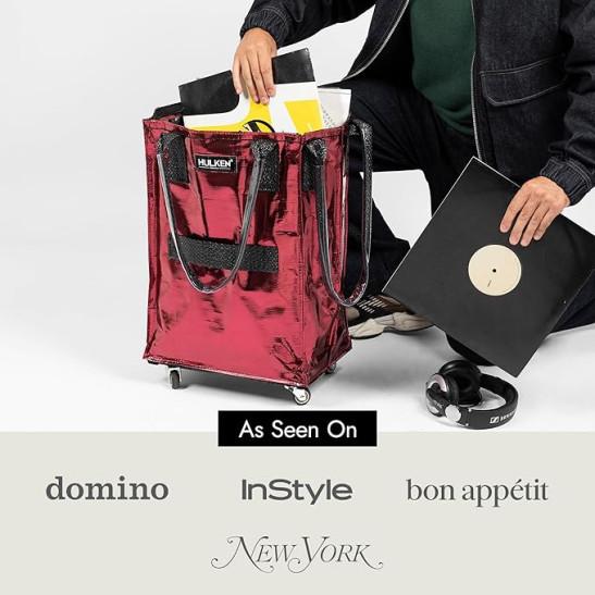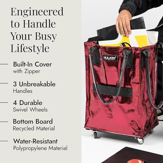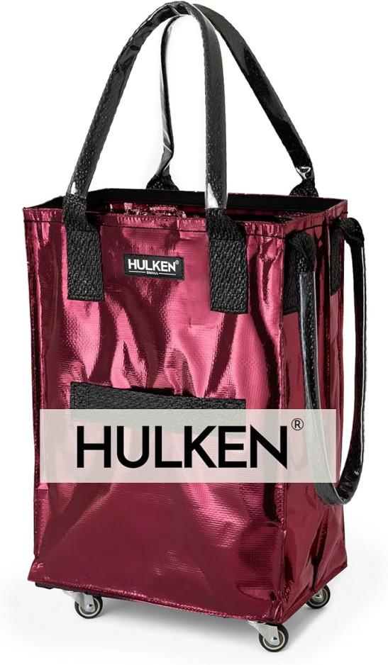 HULKEN (Small, Cosmic Red) Reusable Grocery Bag On Wheels, Shopping Trolley, Rolling Tote, Zipper Closure, Lightweight, Carries Up to 66 lb, Folds Flat