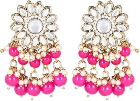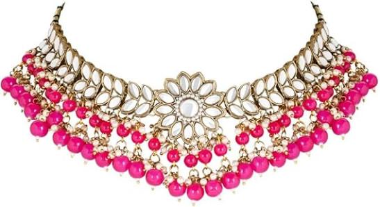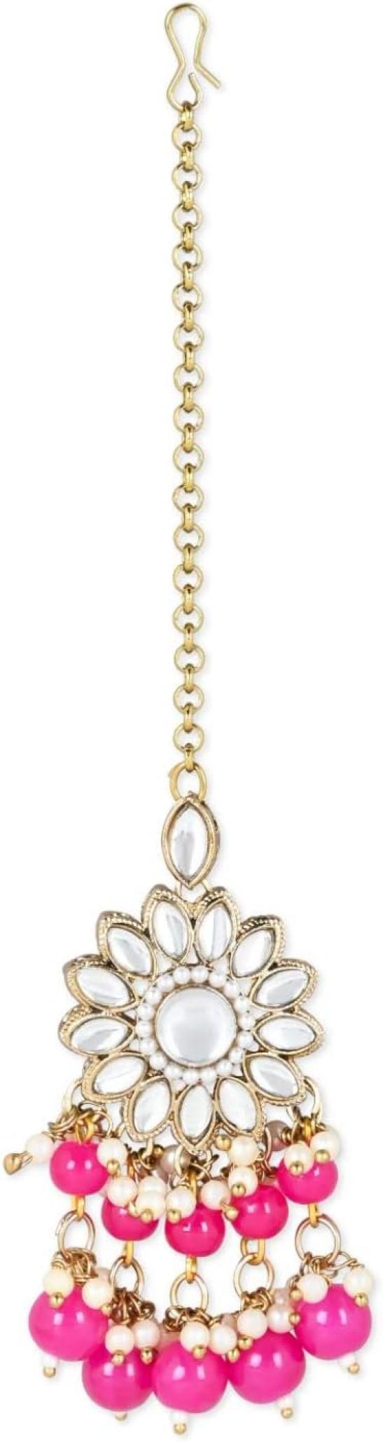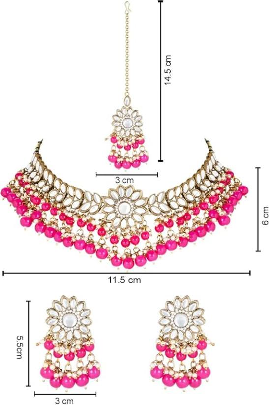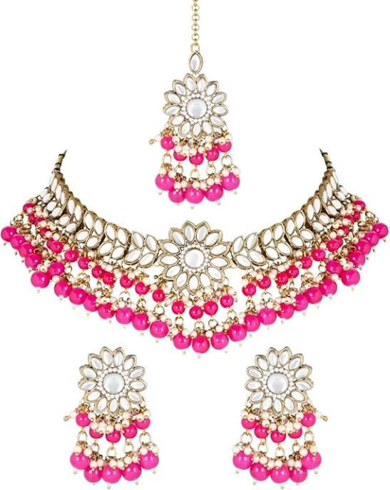 I Jewels Gold Plated Indian Wedding Bollywood Kundan & Pearl Choker Necklace Earring & Maang Tikka Ethnic Jewellery Set Gift for Women & Girls(K7232-1)