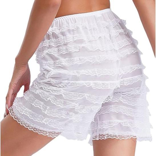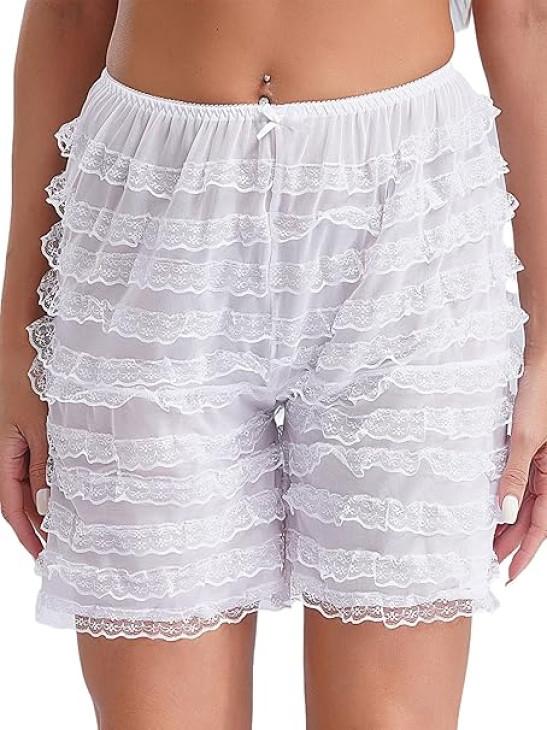 iiniim Women Lolita Bloomers Mesh Ruffles Pumpkin Panties Bottom Lace Trim Layered High Waist Shorts