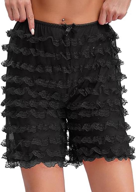 iiniim Women Lolita Bloomers Mesh Ruffles Pumpkin Panties Bottom Lace Trim Layered High Waist Shorts