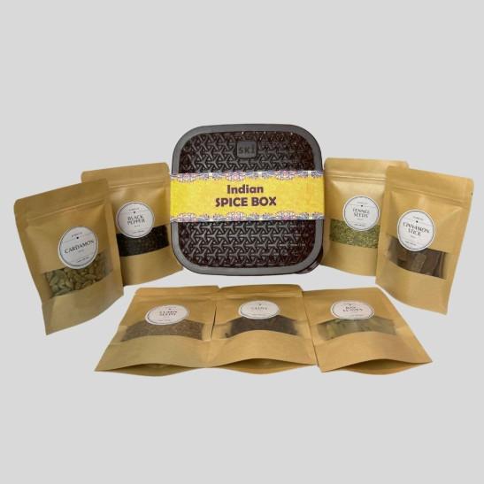 Indian Spice Collection, Spice Box with 7 Cooking Spices and Spice serving spoon - Perfect for Gifting