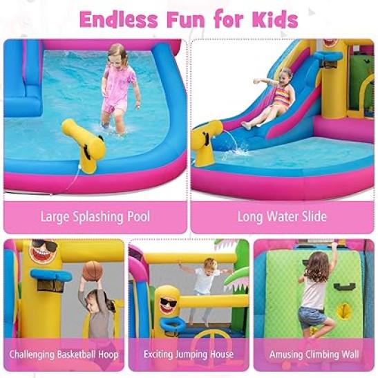 Inflatable Water Slide, Jumping Bouncy Castle for Kids Summer Play