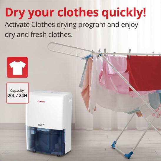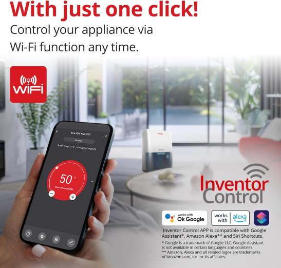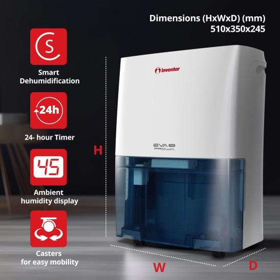 Inventor 20L/Day Dehumidifier, Humidity Display, Mould Remover, Inventor control Wi-Fi app, Ioniser, Sleep Mode, Continuous Drainage, Laundry Drying & 24hr Timer, Low Energy (WEE/MM0449AA)