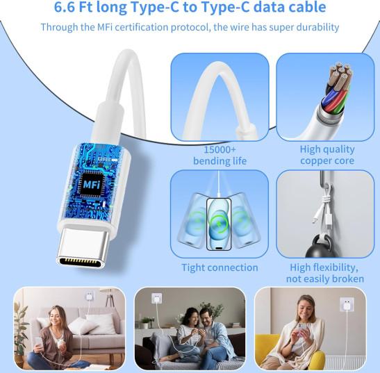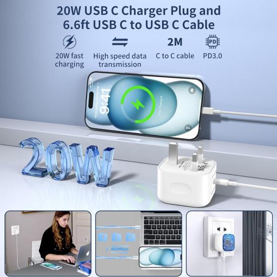 iPhone 15 USB C Charger, [MFi Certified] 20W PD USB C Fast Charger Plug with 6FT USB C to C Cable for iPhone 15/15 Plus/15 Pro/15 Pro Max, iPad Pro/Air/Mini Type C Series, USBC UK Power Adapter