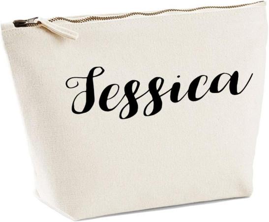 Jessica Personalised Make Up Accessory Bag In Natural Colour Black Print Birthdays Weddings Christmas Makeup