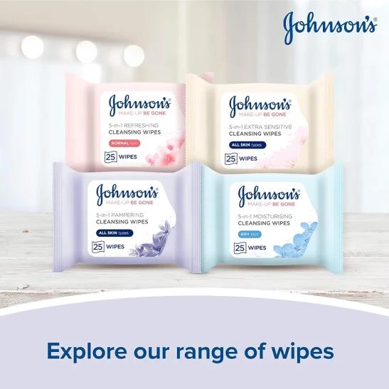 Johnson's Face Care Makeup Be Gone Pampering Wipes (6 x Packs of 25)
