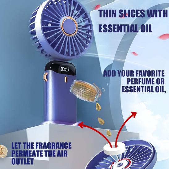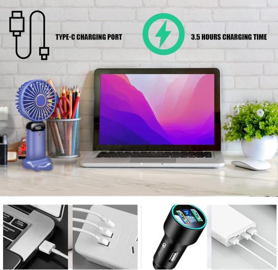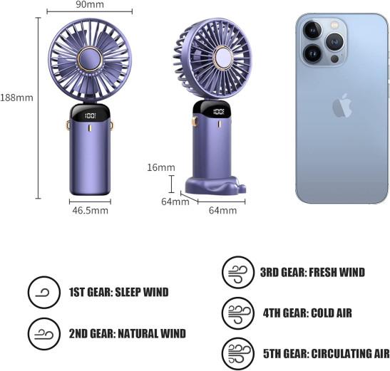 Jsdoin Hand Held Fan,Portable Handheld USB Rechargeable Fans with 5 Speeds,Battery Operated Mini Fan Foldable Desk Desktop Fans with LED Display for Home Office Bedroom Outdoor Travel (Blue)