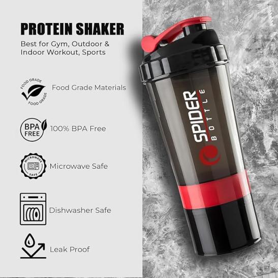 K-MART Protein Shaker Bottle 500ml with Extra Compartment | BPA-Free Protein Bottle Shaker for Protein Shakes | Leak Proof & Dishwasher Safe | Protein Shake Gym Bottles for Men & Women