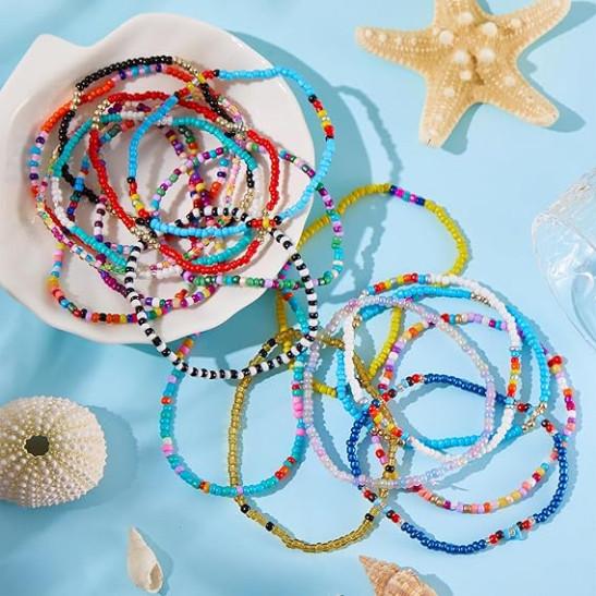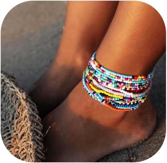 Kenivira Boho Ankle Bracelets for Women Beach Anklet Beads String Preppy Bracelet Colorful Handmade Summer Bracelets Gift for Women Girl