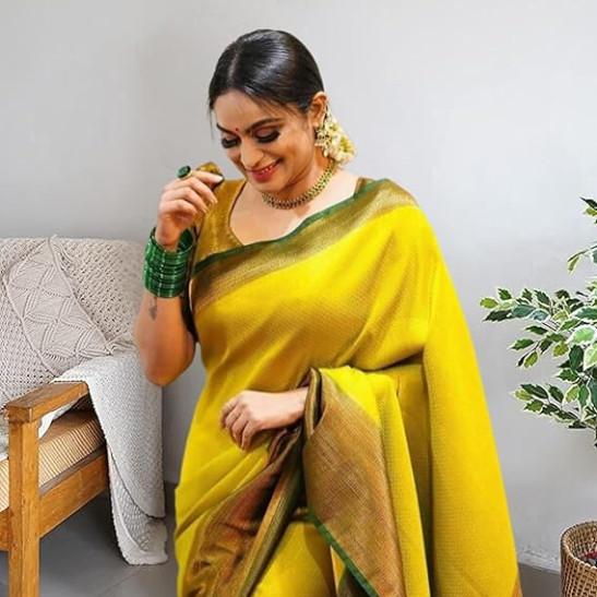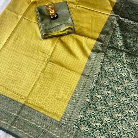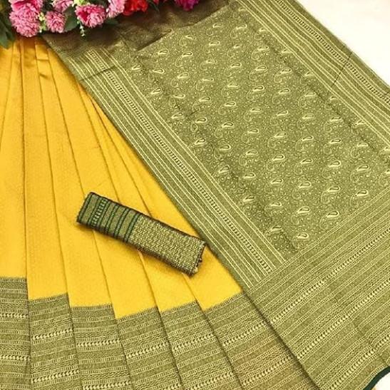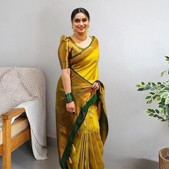 KNETLI Women's Kanjivaram Banarasi Soft Silk Saree Indian Traditional Zari Work with Unstitched Blouse for Wedding Festival