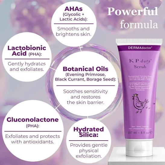 KP Duty Skin Care Body Scrub Dermatologist Formulated Exfoliant for Keratosis Pilaris and Dry, Rough, Bumpy Skin with 10% AHAs + PHAs, 237ml (20315-7)