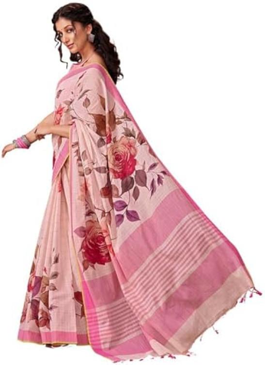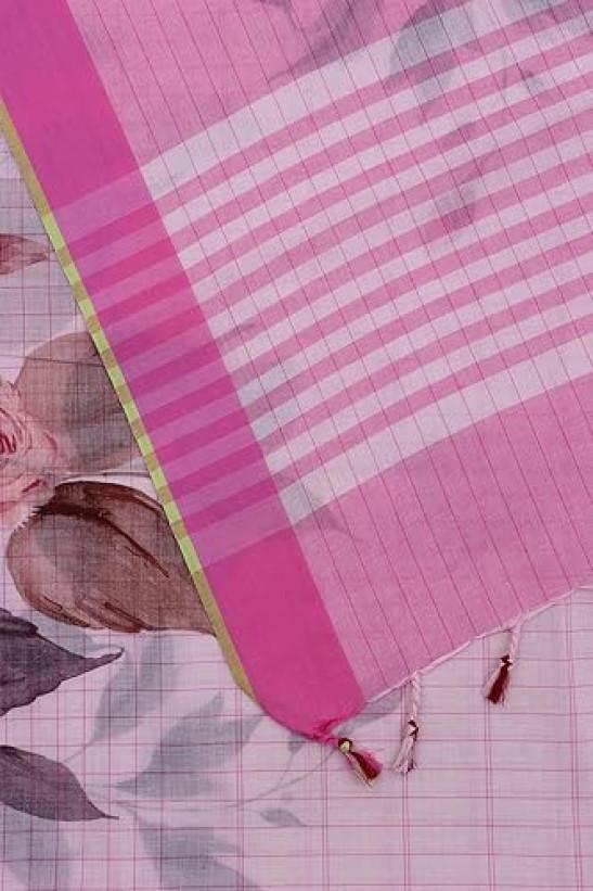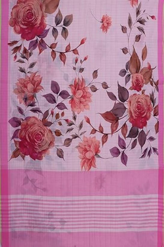 KSR Women's Cotton Saree With Contrast Unstitched Blouse Piece - Elegant Traditional Saree (MKC-036,Light Pink)