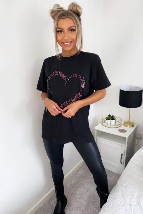Ladies Oversized Printed Heart Short Sleeves T Shirt Top