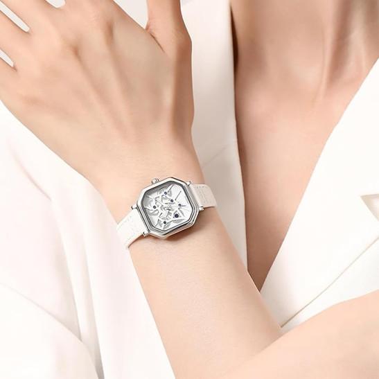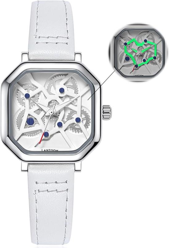 LANZOOM Women's Luminous Punk Heart Quartz Watch - 316L Surgical Stainless Steel, Mechanical Gear Design, White Leather Strap, 3ATM Waterproof, White, punk, cool, distinctive, elegant