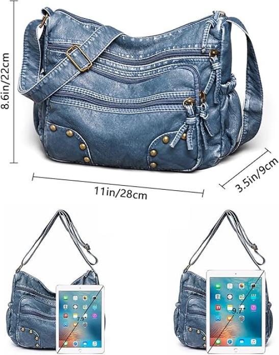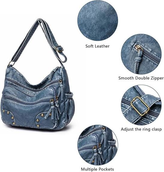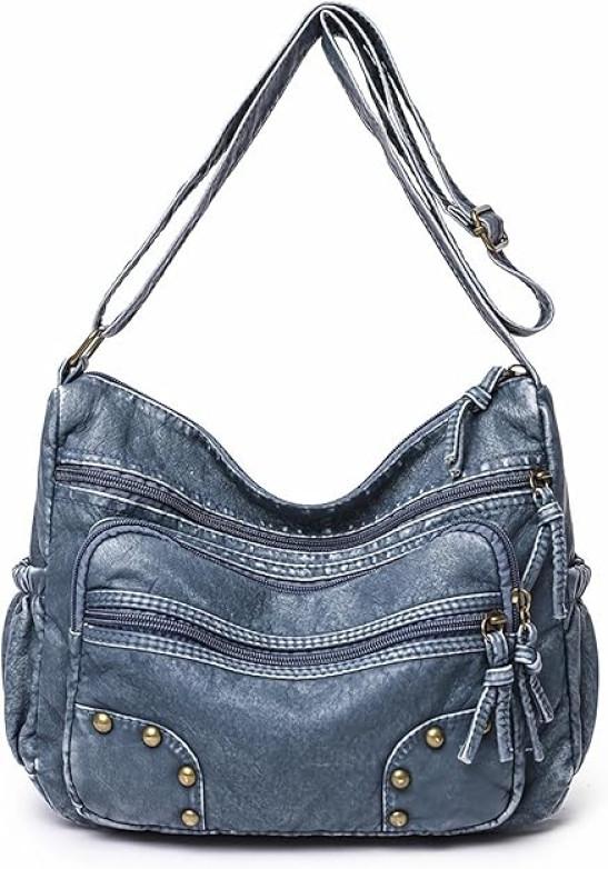 LassZone Soft Leather Handbags for Women Multi-Pocket Crossbody Messenger Bag Ladies Waterproof Satchel Purse Hobo Shoulder Bag for Travel Daily Use