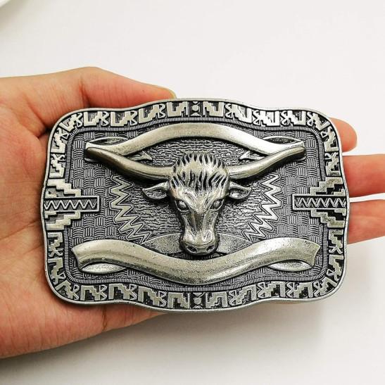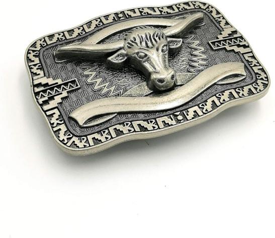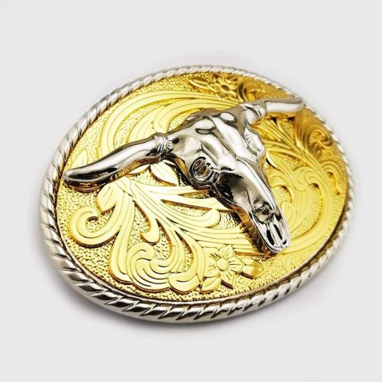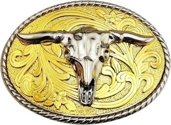 LAXPICOL Western Cowboy Golden Tone Heavy Bull Longhorn Belt Buckle For Men