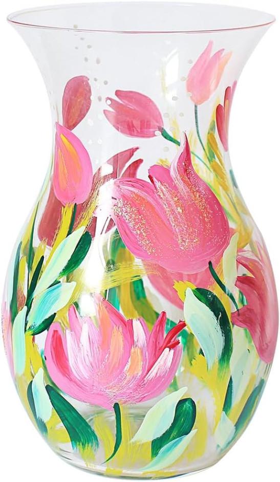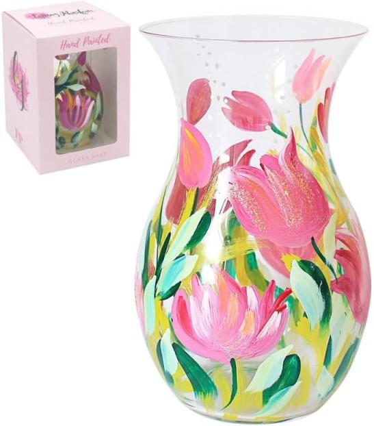 Lesser & Pavey Lynsey Johnstone Tulips Vase For Home & Office | Beautiful Flower Vase For Living Room | Ceramic Decorative Flower Holder | Home Décor Floral Print Flower Vase