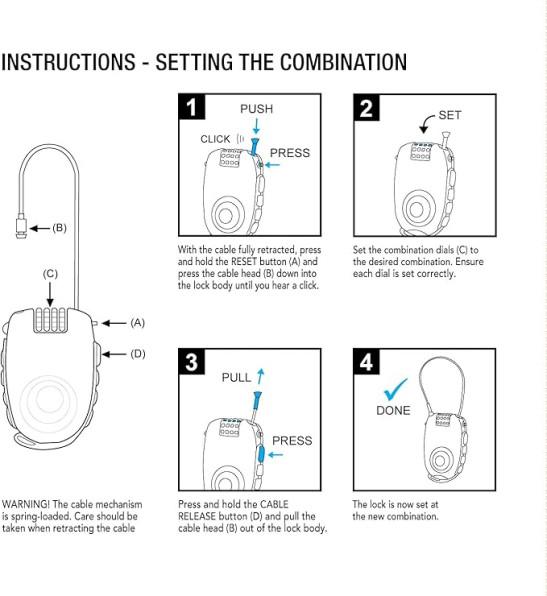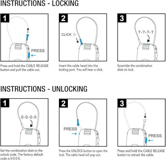 Lifeventure Cable Lock Luggage Lock With 90cm Retractable Steel Cable