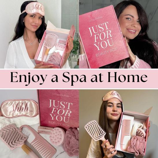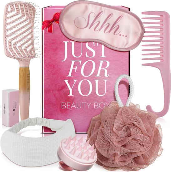 Lily England 7-Piece Valentines Day Gift for Her - Luxury Self-Care Beauty Present for Women with Hair Brush, Wide-Tooth Comb, Eye Mask, & Hair Essentials - Premium Womens Valentines Gift