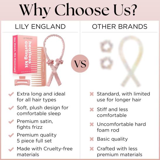 Lily England Heatless Curlers Gift Set, Hair Curler Headband, Heatless Curls for Long Hair & Short Hair, No Heat Curlers for Overnight Heatless Curls - Attractive Present for Teens Girls & Women