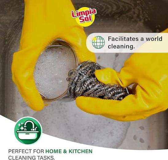 Limpia Sol | Pack 12 Stainless Steel Scrub Sponge | Apartment Essentials - Cleaning Supplies Sponges Kitchen - Steel Wool Sponge