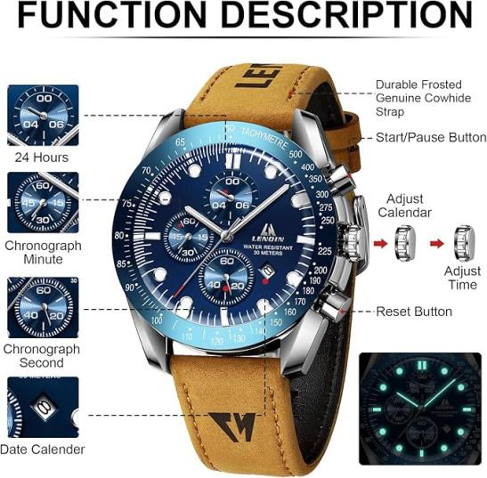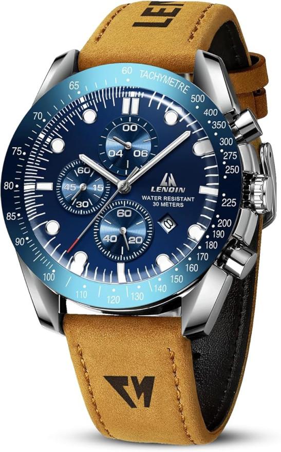 LN LENQIN Mens Watches Analog Quartz Watches for Men 30M Waterproof Men's Wrist Watches Fashion Business Watches with Date Leather Watch No Chronograph