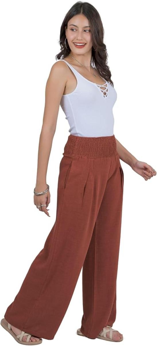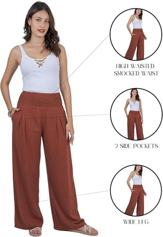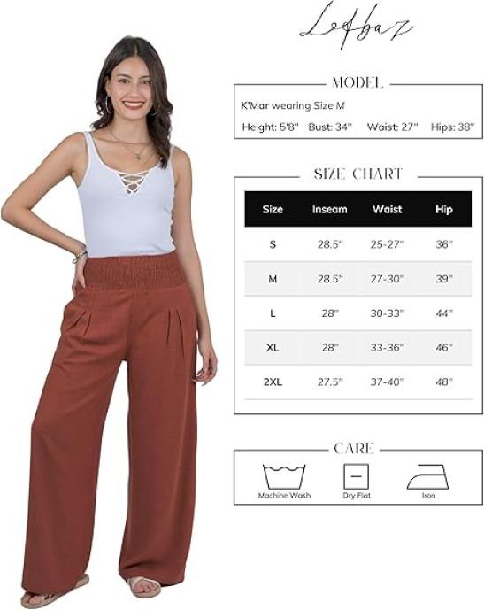 Lofbaz Women Linen Palazzo Wide Leg Pants Flowy Lounge Casual High Waist Trousers Summer Beach Boho Long Pant with Pockets