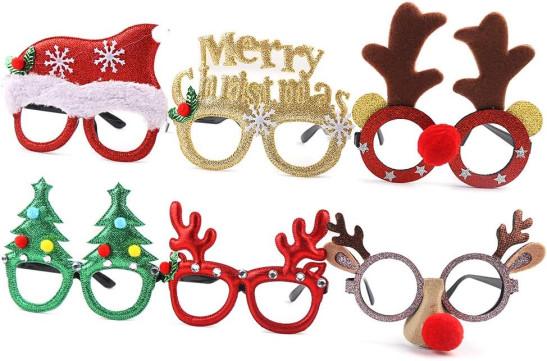 LOKIPA 6pcs Merry Christmas Party Gitter Glasses Frames Christmas Decoration Novelty Costume Fancy Dress Glasses Eyeglasses without Lenses for Kids and Adult