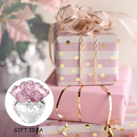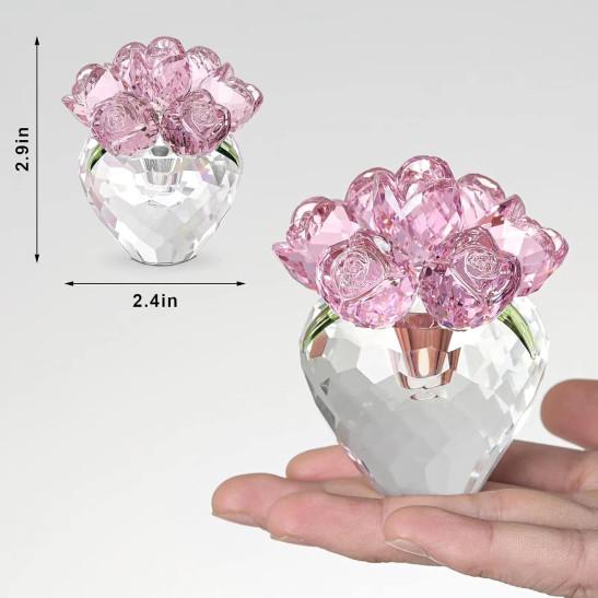 LONGWIN Crystal Rose Flower Figurines Glass Flower Spring Bouquet with Vase Home Decor Collectible Figurines, Romantic Crystal Gifts for Women on Valentines Day, Mothers Day